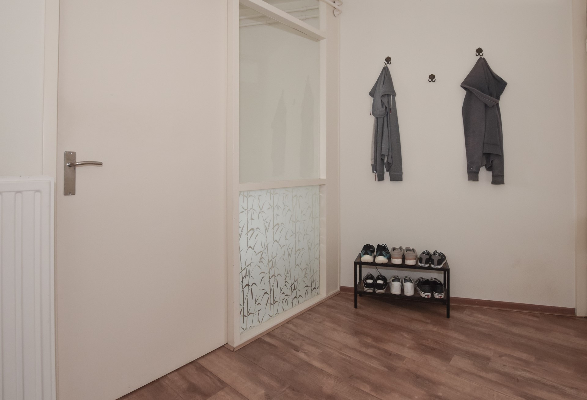 U komt binnen in de ruime hal, welke is voorzien van een laminaatvloer.