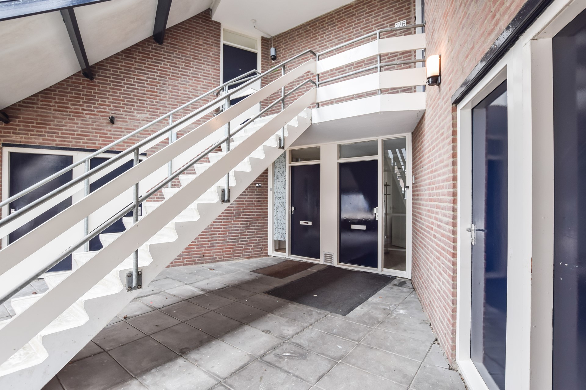 Het appartement is bereikbaar via een gezamenlijke overdekte portiek. De in de portiek gelegen (en dus droog bereikbare) berging van circa 5 m2 is voorzien van verlichting. Het voorterrein is bestraat en biedt daarmee ruimte voor een ruime, eigen parkeerplaats.